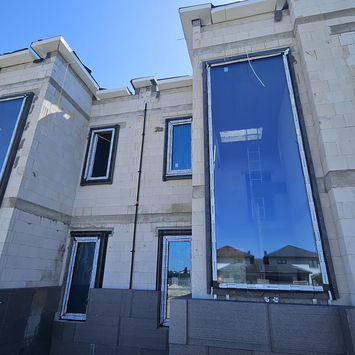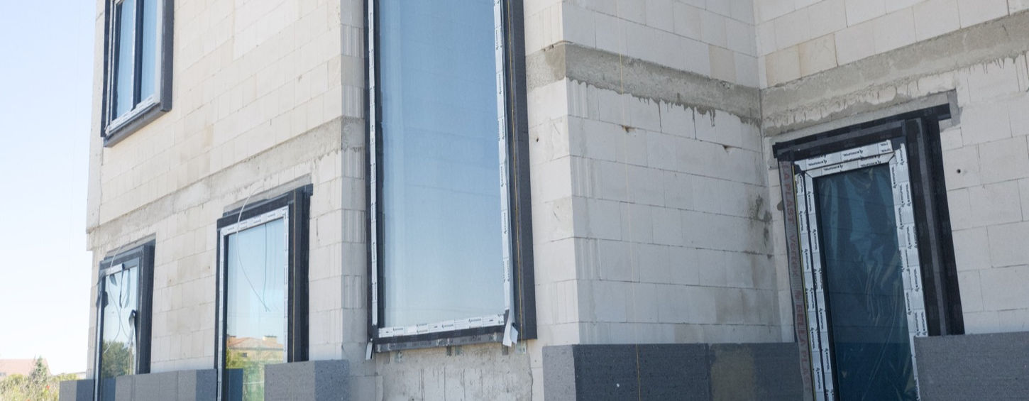 Okna trzyszybowe KRISHOME, osadzone na murze pod warstwą termoizolacyjną - dom z widokiem i oszczędnością w pakiecie.